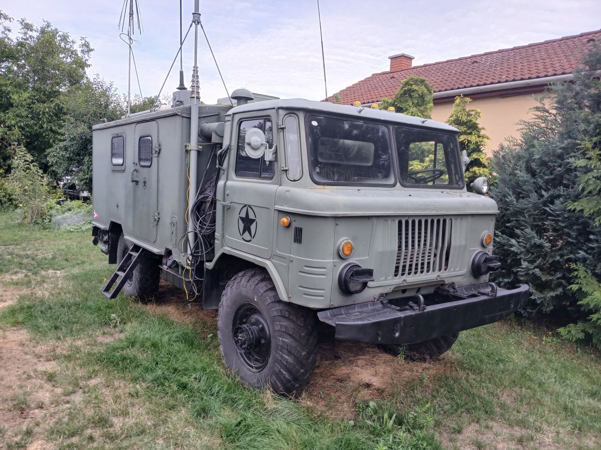 Egy üres GAZ-66 bódéval vettem, az elválasztó falat kivettem, így jobban jár a levegő benne, s jobban áttekinthető, komfortosabb lett a tér. Asztalt és padládát is beszereztem, s beépítettem az R-142 állomáshoz tartozó berendezésekkel együtt. Sajnos a jachta P-590 hiányzik belőle, de sebaj. A felépítményre felszereltem az antennák és árbócok nagy részét, áramfejlesztőt is beszereztem, orr generátort is beszereztem, kannákat is beszereztem hozzá. A kocsi műszerfalát nem bántom, de az odavaló egységeim megvannak.