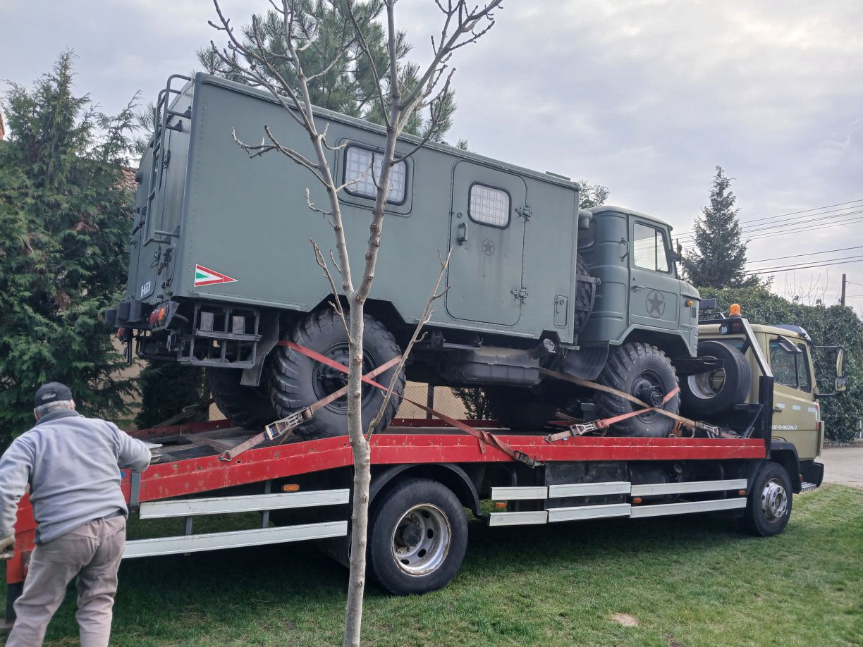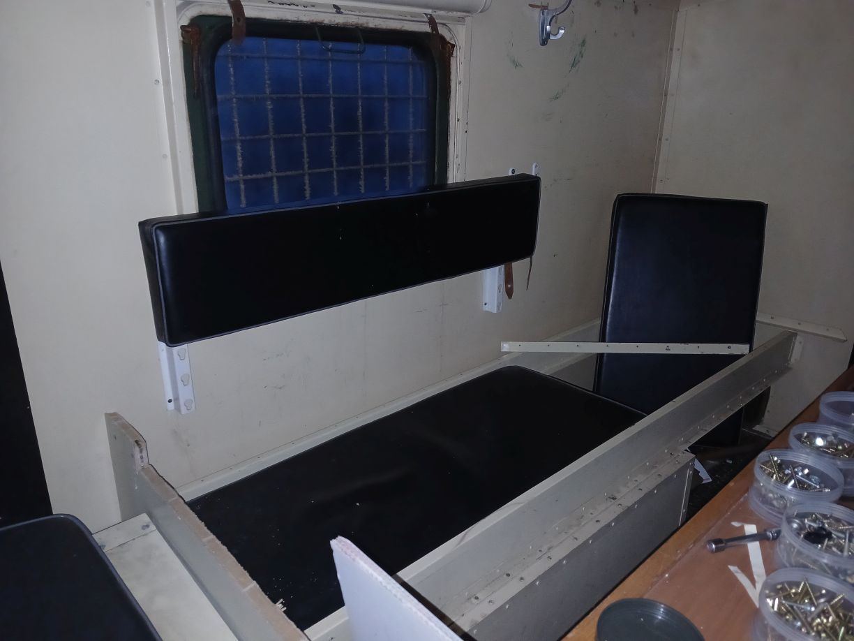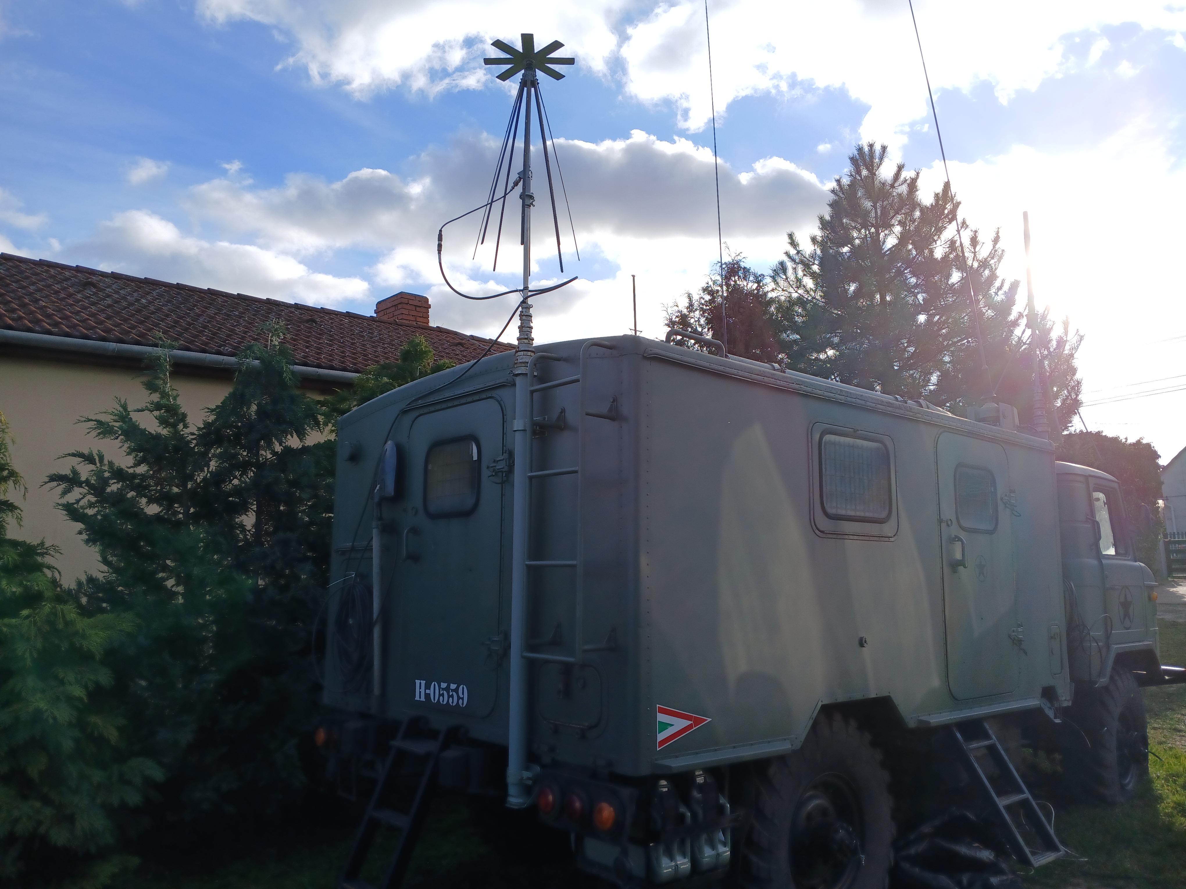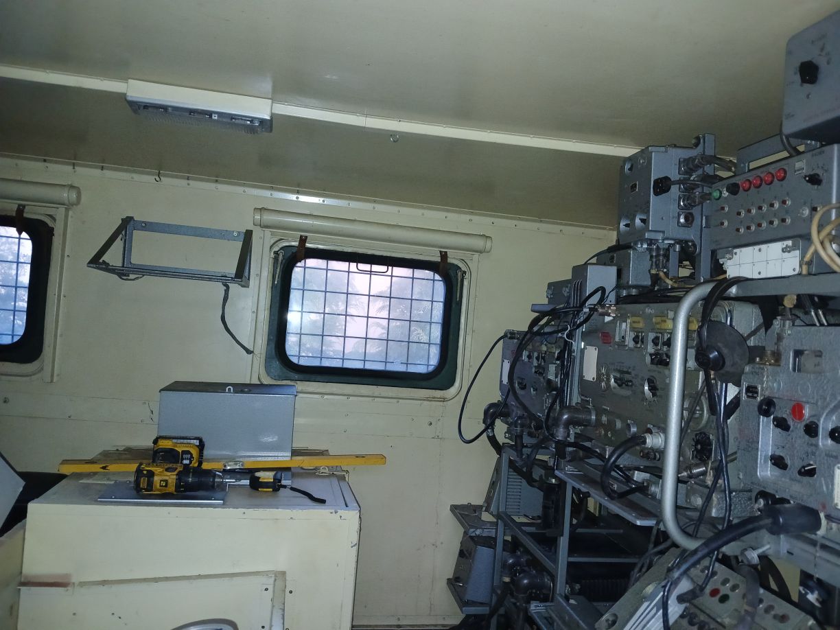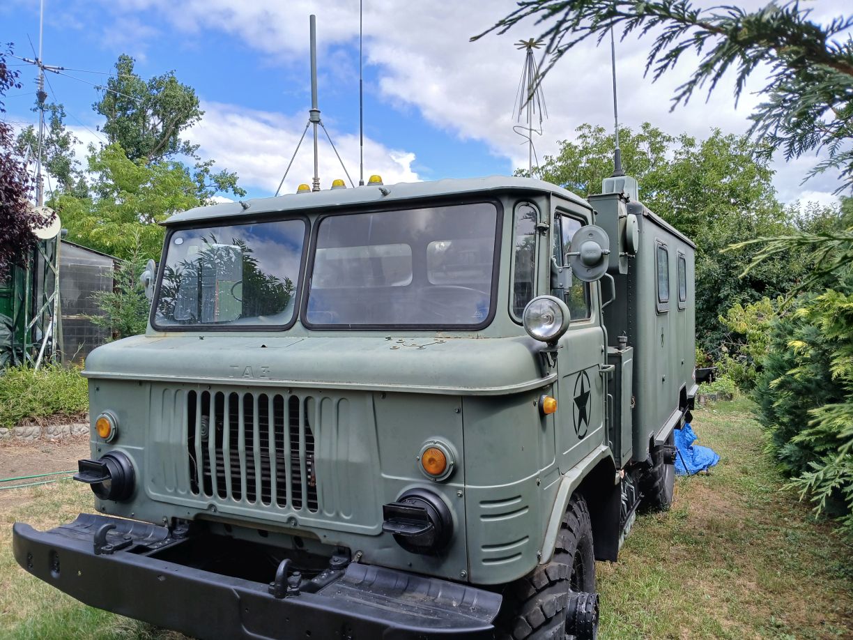 Egy üres GAZ-66 bódéval vettem, az elválasztó falat kivettem, így jobban jár a levegő benne, s jobban áttekinthető, komfortosabb lett a tér. Asztalt és padládát is beszereztem, s beépítettem az R-142 állomáshoz tartozó berendezésekkel együtt. Sajnos a jachta P-590 hiányzik belőle, de sebaj. A felépítményre felszereltem az antennák és árbócok nagy részét, áramfejlesztőt is beszereztem, orr generátort is beszereztem, kannákat is beszereztem hozzá. A kocsi műszerfalát nem bántom, de az odavaló egységeim megvannak.